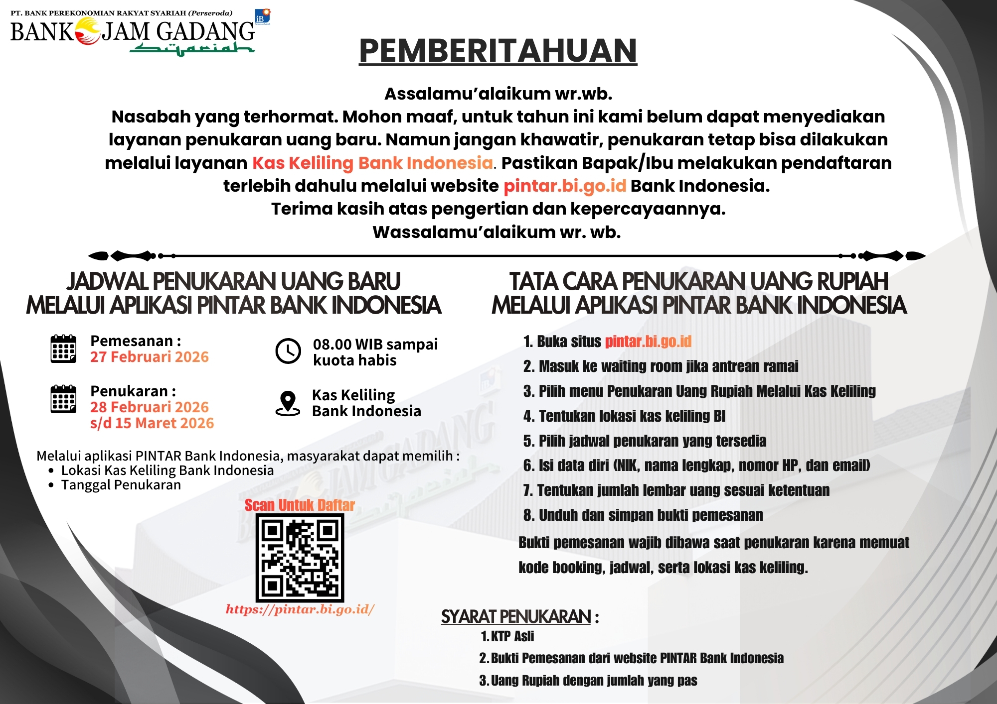 Assalamu'alaikum Wr. Wb Nasabah yang terhormat, Sehubungan dengan akan di renovasinya gedung Kantor Pusat PT. BPRS JAM GADANG…