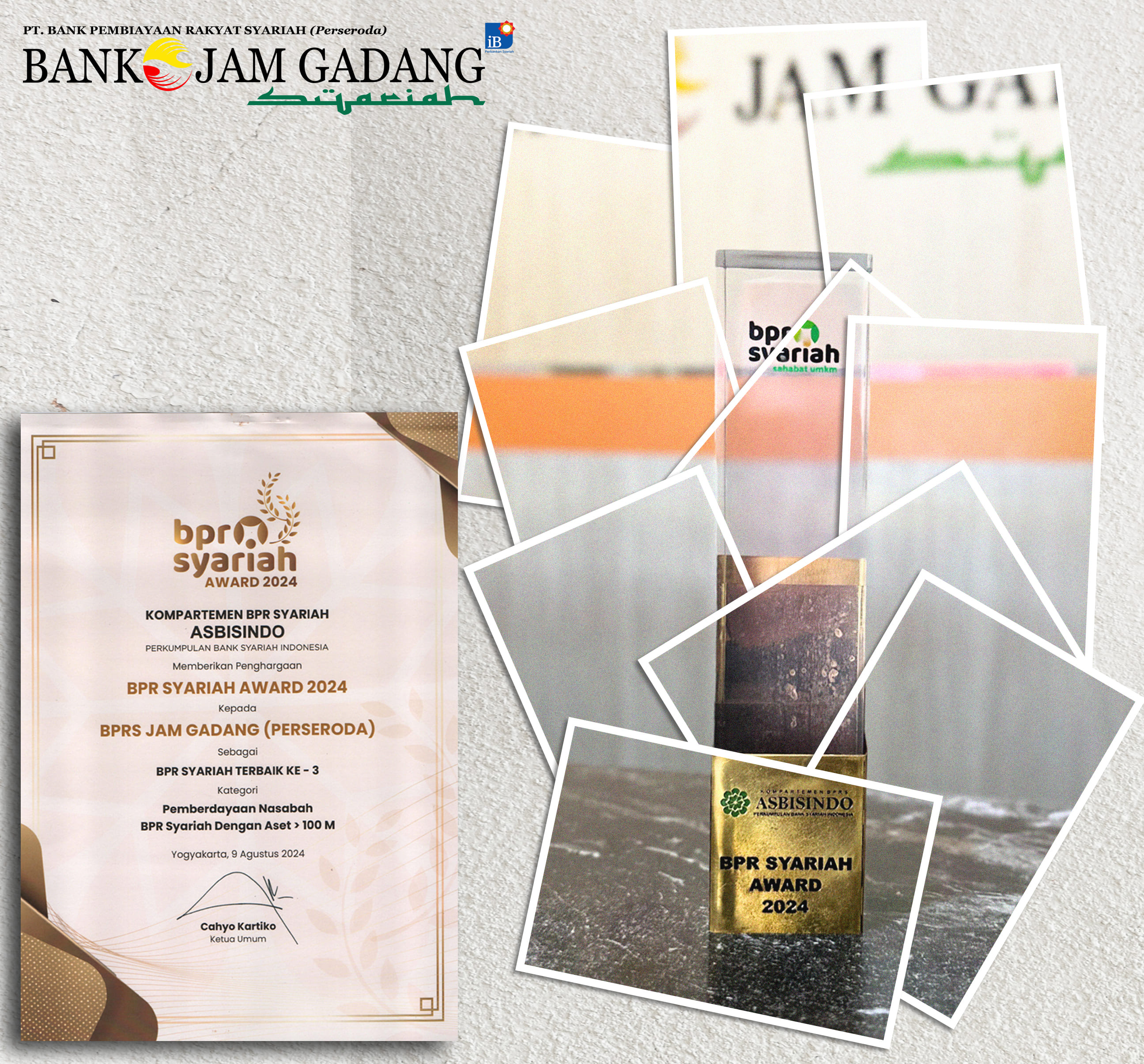 Penghargaan dari Kompartemen BPR Syariah ASBISINDO kepada PT. BPRS Jam Gadang (Perseroda) sebagai BPR Syariah Terbaik ke-3 kategori…