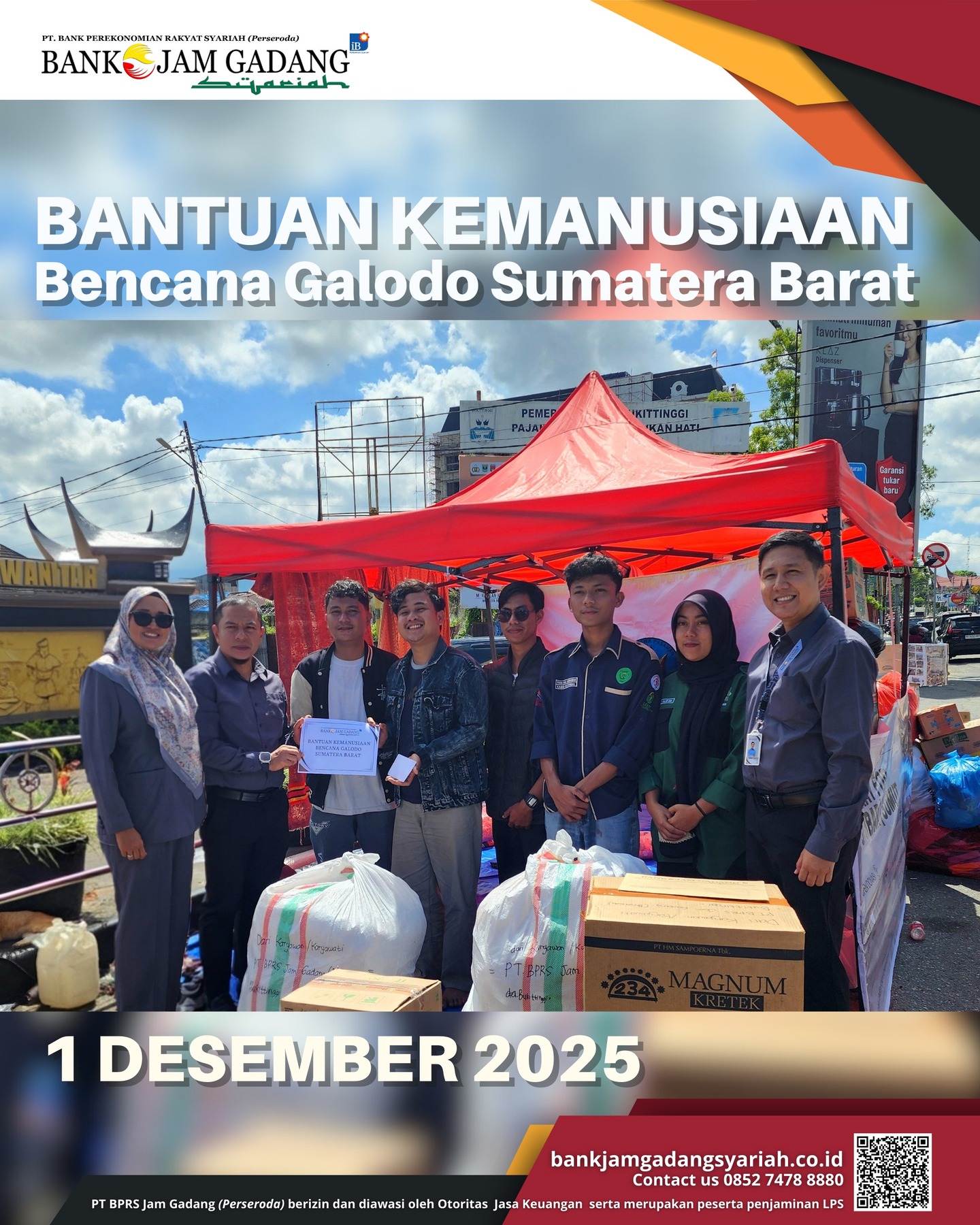 BANTUAN KEMANUSIAAN BENCANA GALODO SUMATERA BARAT Alhamdulillah, PT. BPRS Jam Gadang (Perseroda) telah menyalurkan bantuan kemanusiaan untuk saudara-saudara…