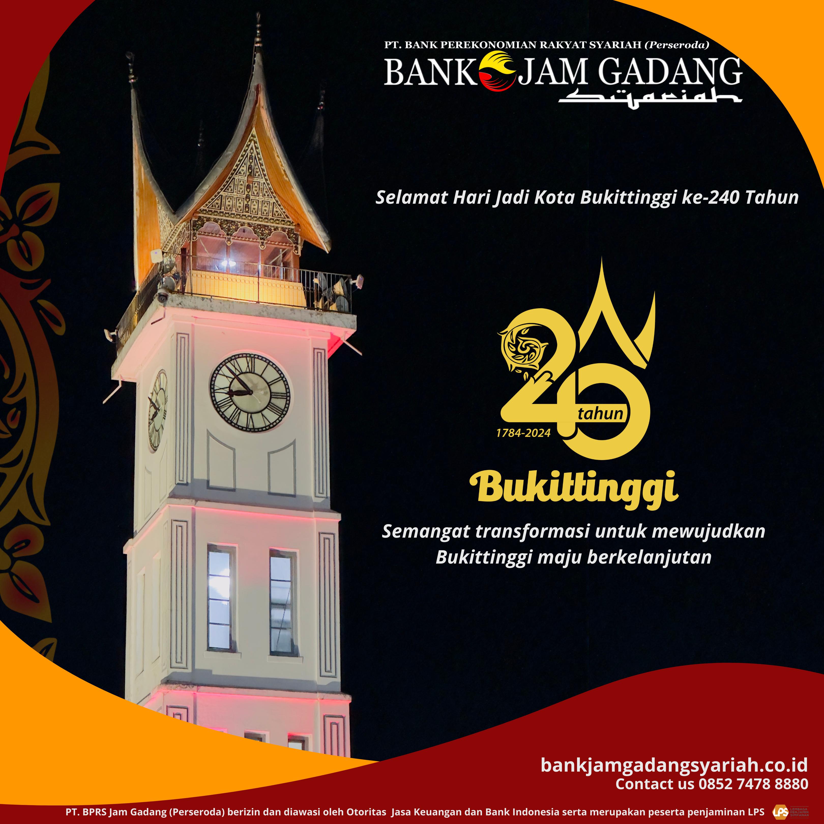 PT. BPRS Jam Gadang (Perseroda) dengan penuh kebanggaan mengucapkan selamat kepada Kota Bukittinggi di hari jadinya yang ke-240…