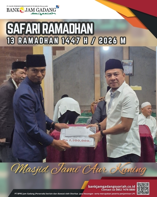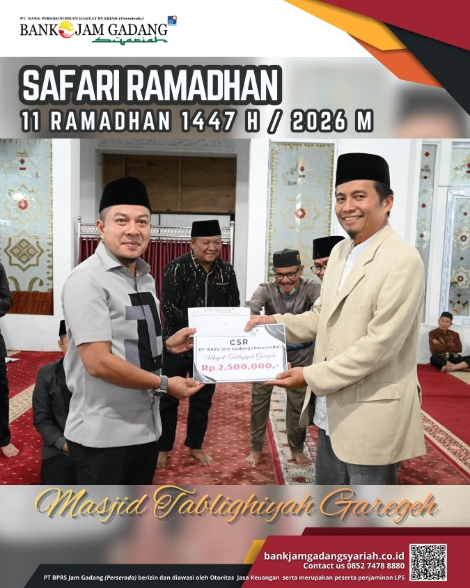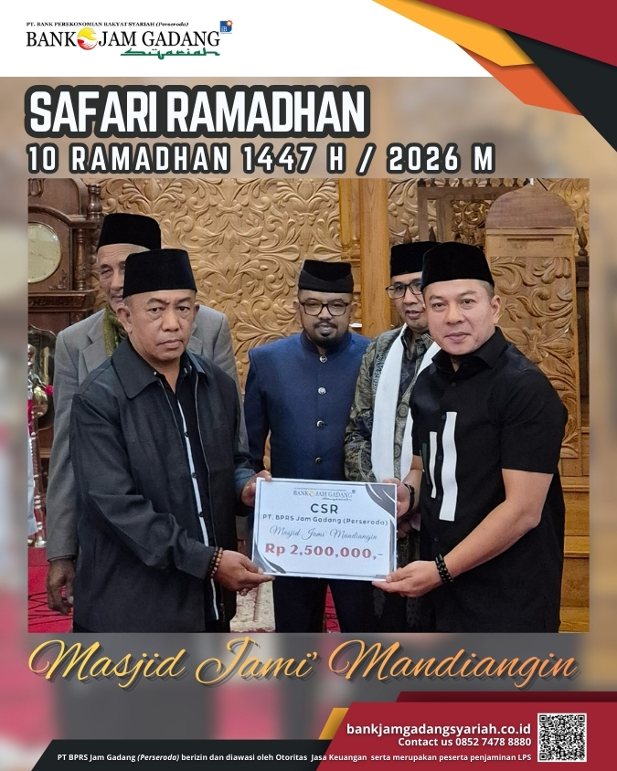 Alhamdulillah, PT. BPRS Jam Gadang (Perseroda) melaksanakan kegiatan Safari Ramadhan di Masjid Tablighiyah Garegeh pada 11 Ramadhan 1447…
