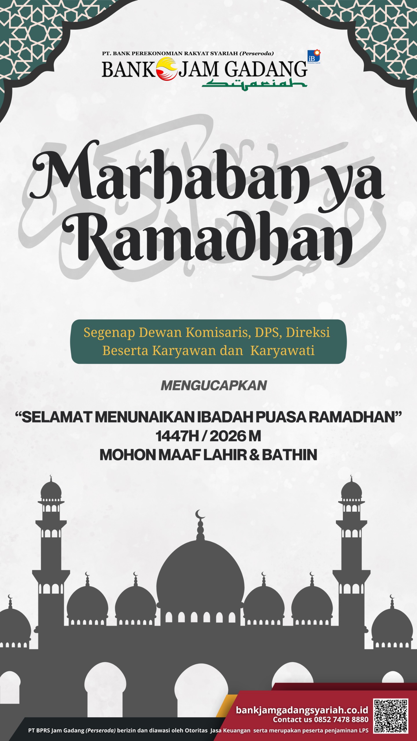 Bulan suci Ramadhan telah tiba, bulan yang penuh berkah, rahmat, dan ampunan. PT BPRS Jam Gadang (Perseroda) mengucapkan…