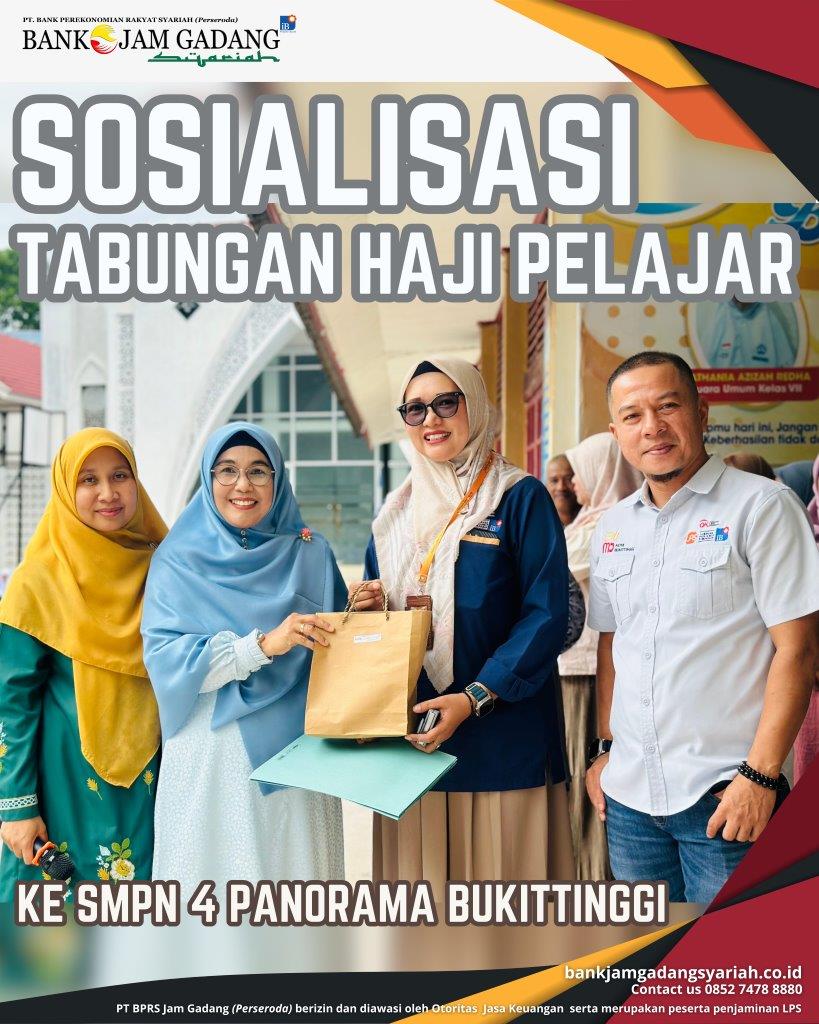 Alhamdulillah, hari ini PT. BPRS Jam Gadang Syariah (Perseroda) berkesempatan mengadakan sosialisasi Tabungan Haji Pelajar di SMPN 4…